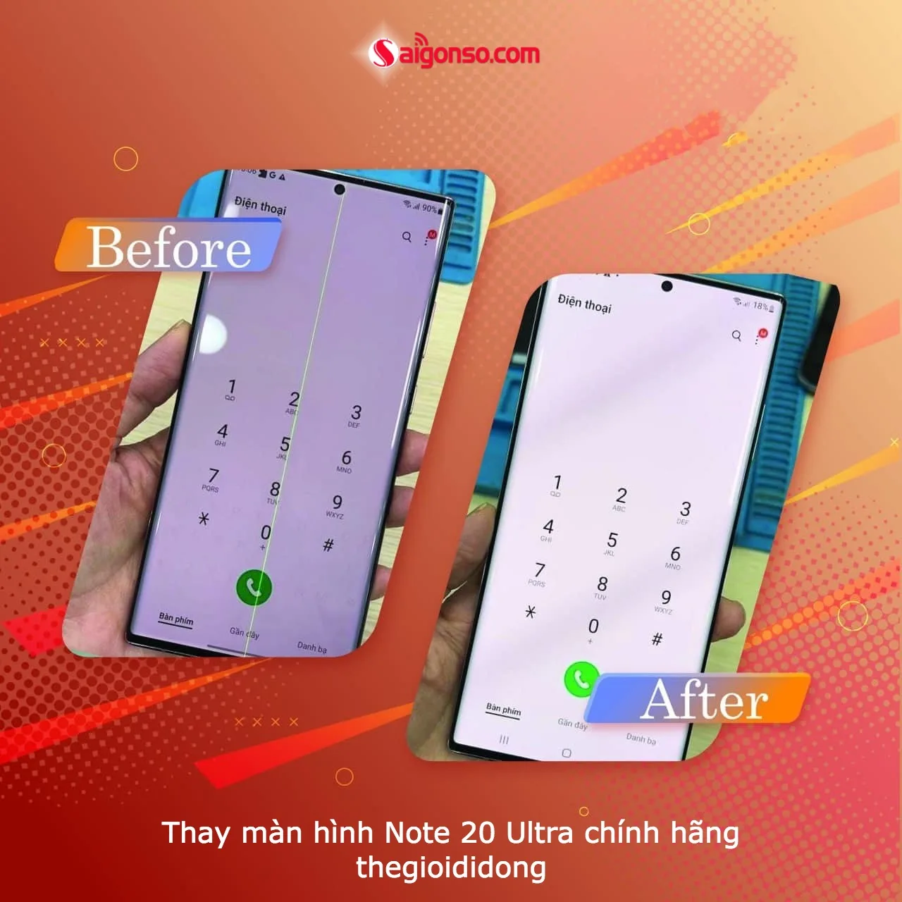 SAIGONSO cam kết dịch vụ thay màn hình Samsung Galaxy Note 20 Ultra uy tín , chính hãng , giá rẻ tại Thegioididong kèm nhiều ưu đãi cho học sinh , sinh viên , tài xế công nghệ , khách hàng thân thiết. Ngoài ra chúng tôi còn cung cấp dịch vụ sửa chữa samsung giá rẻ, bảo hành 24 tháng, đổi trả 1 đổi 1 trong 6 tháng đầu nếu có lỗi của nhà sản xuất.