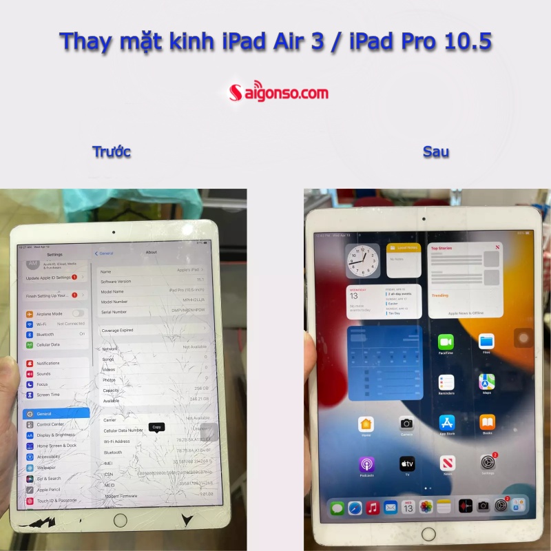 Dưới đây là bảng giá tham khảo cho dịch vụ ép kính iPad Air 3 và iPad Pro 10.5 inch tại hệ thống Saigonso: